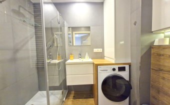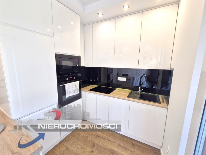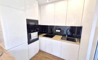 - kuchnia w zabudowie wraz ze sprzętem AGD : płyta indukcyjna, piekarnik, lodówka, zmywarka, mikrofala