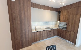 - kuchnia w zabudowie wraz ze sprzętem AGD: lodówka, płyta indukcyjna, piekarnik, zmywarka, mikrofala