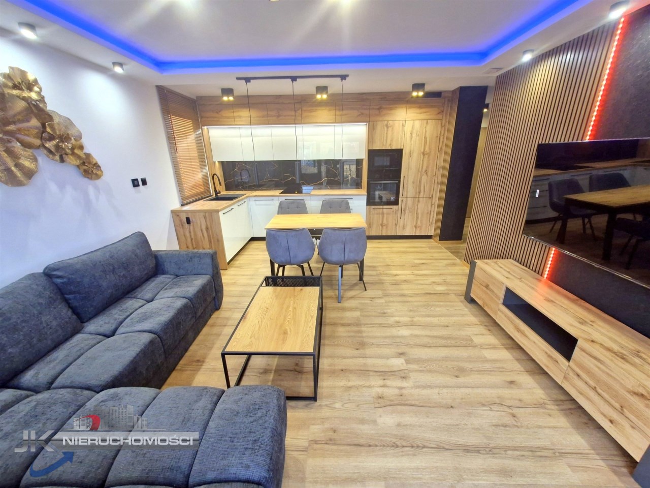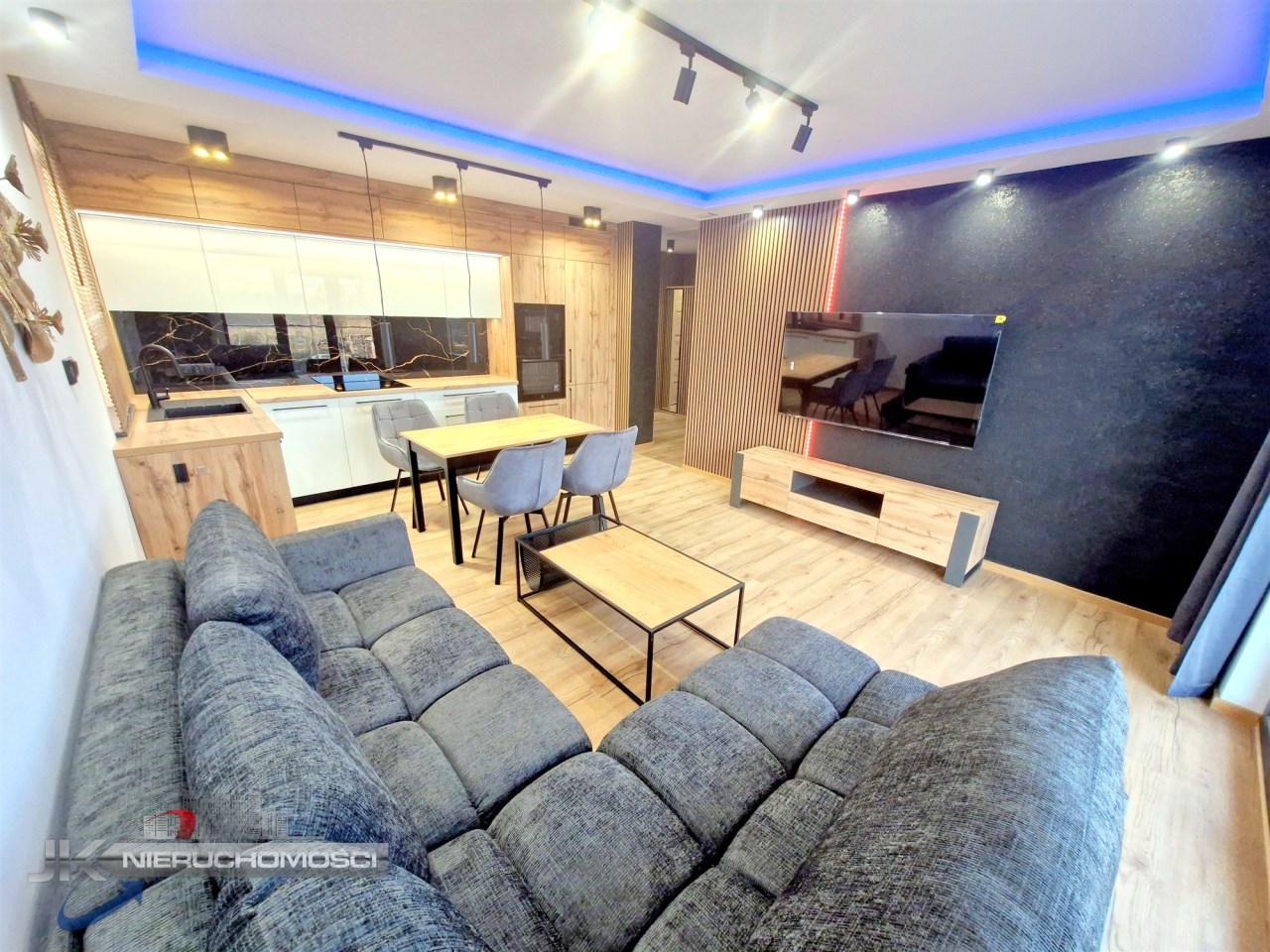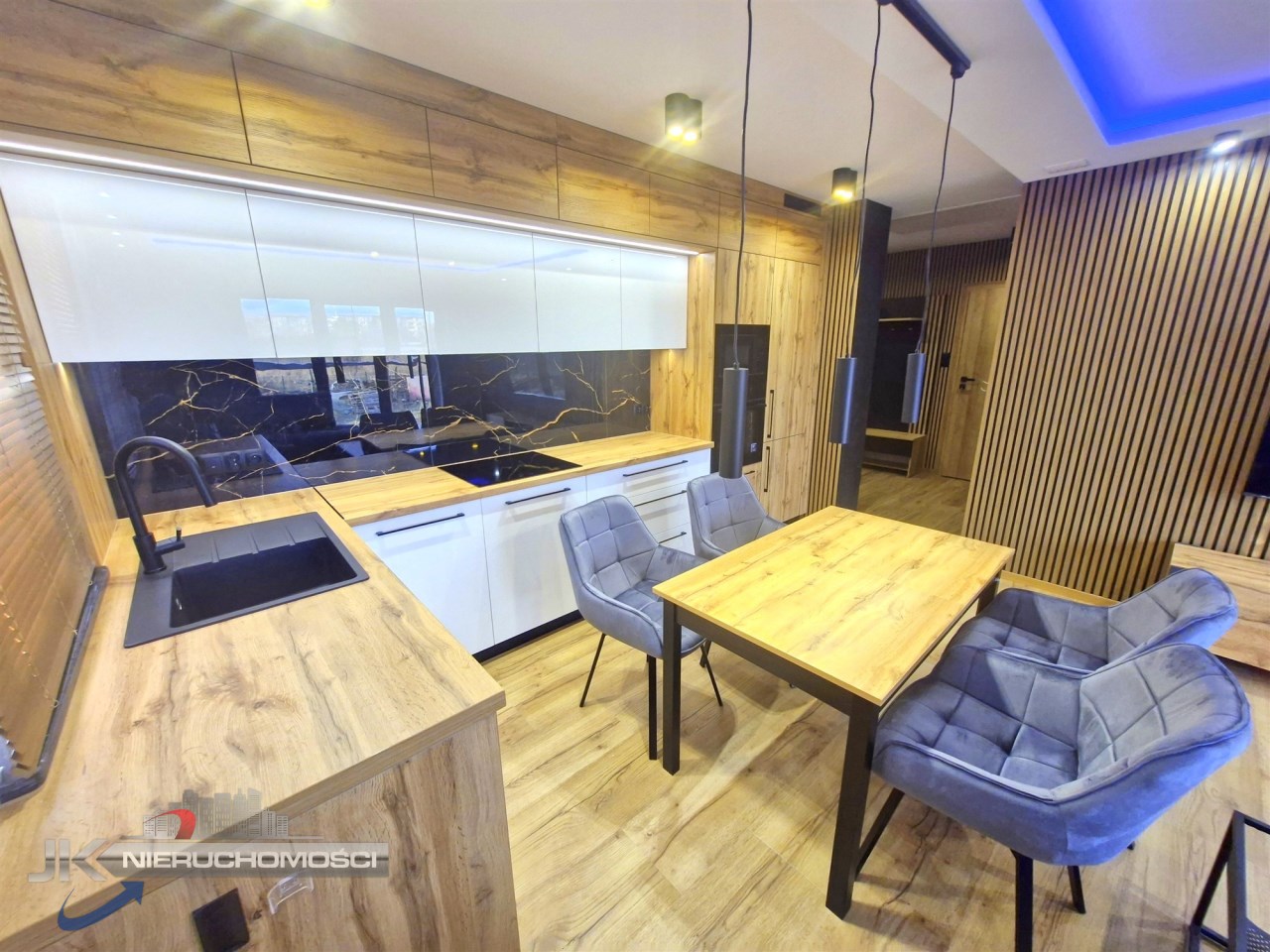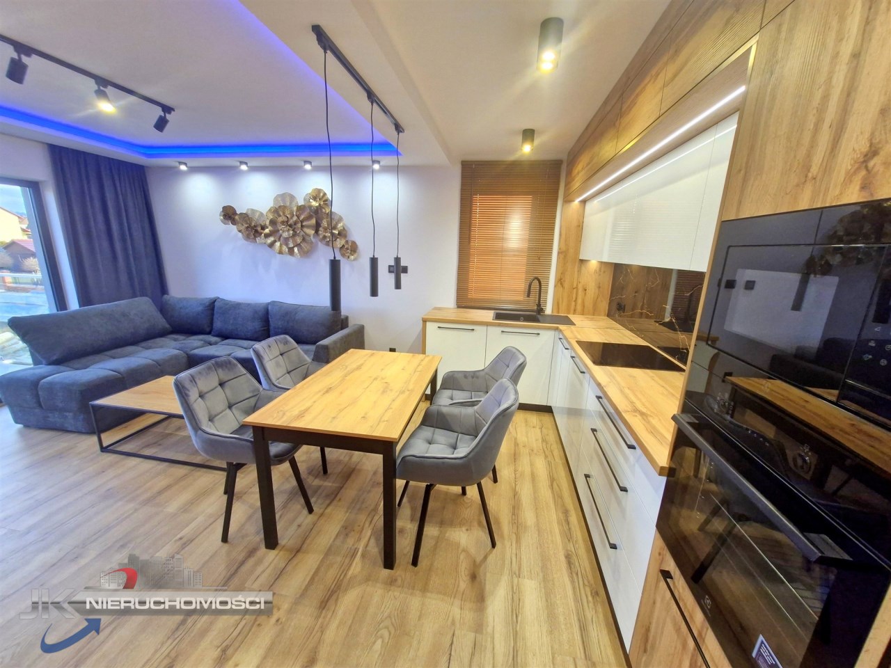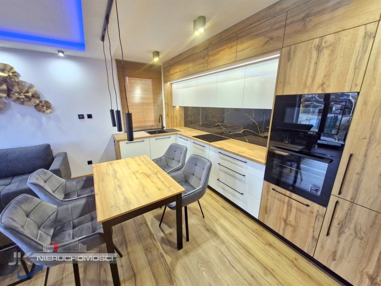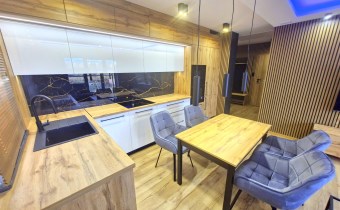 - wysokiej jakości kuchnia w zabudowie wraz ze sprzętem AGD : płyta indukcyjna, piekarnik, lodówka, okap, zmywarka, mikrofala